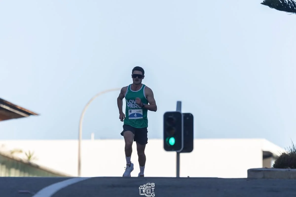 Jonah cresting the rise into Cronulla at the Sutho to Surf